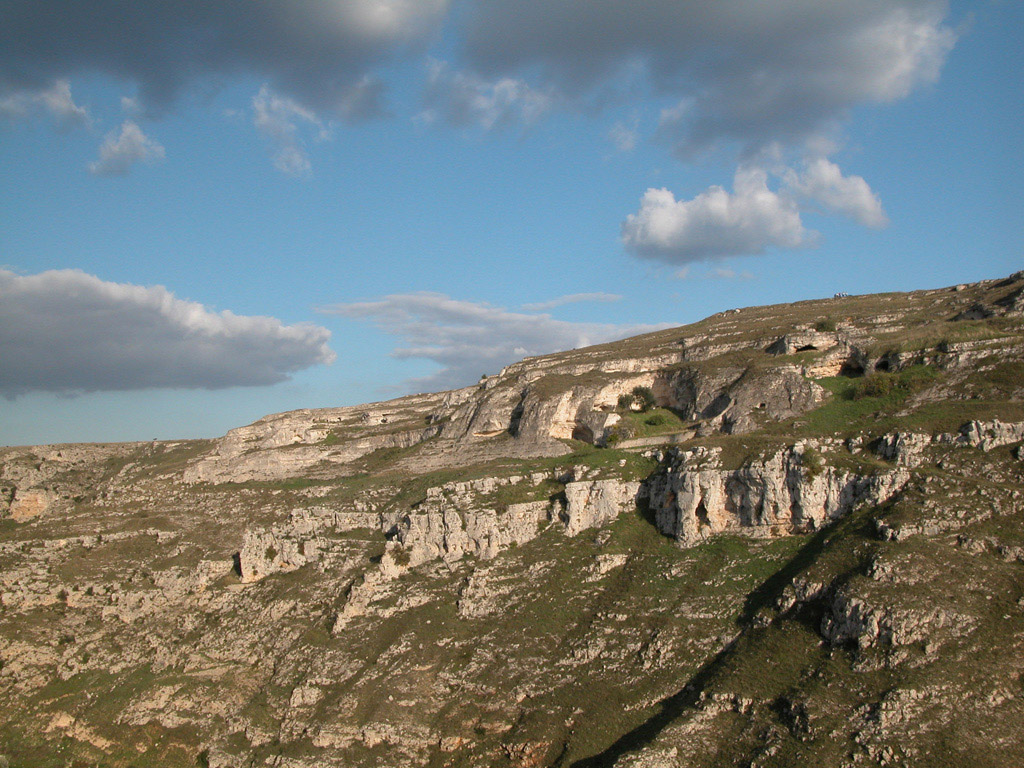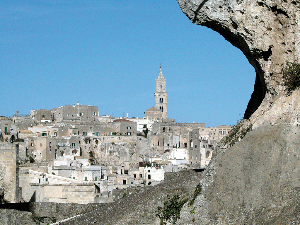 Matera è città antichissima e la sua origine si perde nella preistoria. Per il substrato abitativo consistente in grotte scavate nel masso tufaceo è nota come la«città sotterranea» e per la continuità di vita dal paleolitico ai giorni nostri è ritenuta una delle più antiche del mondo. Ai primi popoli nomadi affacciatisi sulla Murgia ne seguirono altri dediti alla pastorizia i quali si fissarono intorno al provvido serbatoio d’acqua chiamato lurio, e principalmente sulla Murgia Timone, sulla Murgecchia e sul colle della «Civita», occupando grotte e organizzandosi in villaggi trincerati.